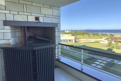 Piso alto, magnifica vista al mar (Playa Mansa, Puerto y Playa Brava). Ideal para los amantes de los amaneceres y atardeceres de Punta! Comodidades: - Amplio living comedor con excelente luz - Terraza cerrada con vista 180 grados de mar - Toilette - Cocina amplia con barra desayunador - Lavadero - 3 amplios dormitorios (una suite) - 2 baños - Garaje - Baulera -Cortinas eléctricas -Excelente equipamiento Por mas información conversa con nosotros