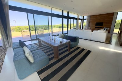 Moderna casa frente al mar en Manantiales, ubicada en Barrio privado Laguna Blanca. Ideada para el máximo disfrute construida en 3 plantas. Comodidades: Planta alta: -Encontramos la suite principal con salida a una gran terraza, vista al mar espectacular, vestidor y baño con hidromasaje. -2 dormitorios en suite con bañera. -Playroom con salida a otra terraza. Planta media: -Hall de recepción -1 Toilette -Gran living con estufa a leña y comedor -Cocina totalmente equipada -Barbacoa con conexión al jardín -Piscina conectada con la barbacoa, dejando una parte de ella techada. Planta baja: -Microcine, totalmente preparado -Cava de vinos -Mezcladora de DJ -Habitación de huéspedes -2 baños que atienden la parte recreativa y otro que atiende la piscina. -Dependencia de servicio con baño. -Sala de maquinas -Garaje para 2 autos. -Cámaras de vigilancia instaladas en el perímetro de la casa - AA en todos los ambientes