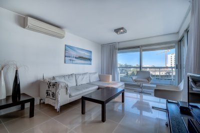 Muy lindo apartamento en alquiler por invierno, living comedor con aire acondicionado y cocina integrada, muy linda terraza con ingreso desde todos sus ambientes, dormitorio principal en suite con aire acondicionado, garage en sub suelo