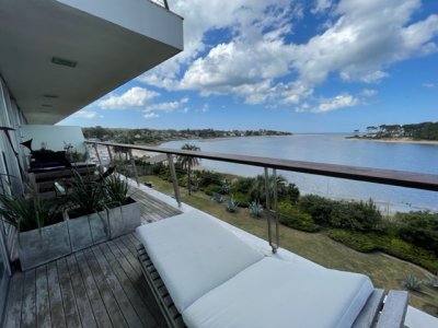 Pent House con inmejorable vista de la desembocadura de La Barra, 3 dormitorios, 4 baños, piscina y parrillero individual y todos los servicios de Delamar.