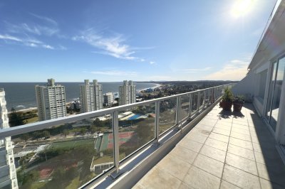 Excelente Penthouse en venta con amplia vista al mar cuenta con: - 5 dormitorios - 5 baños (3 en suite) - 2 toilette - Dependencia de servicio con baño - Living amplio - Comedor - Cocina definida - Desayunador con vista al mar - Escritorio con sala de Cine - Suite principal con Jacuzzi, vestidor y sauna seco - Barbacoa cerrada - Amplia terraza con vista desde peninsula hasta punta ballena - 2 garage en sub suelo - 4 estacionamientos propios consulte con nuestros agentes