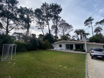 Gran casa en venta y alquiler de 3 dormitorios Punta del Este. Comodidades: -3 dormitorios, todos con placard y aire acondicionado. -Cocina definida con doble bacha, espacio de guardado y tv. -Amplio living comedor con aire acondicionado. -Dos baños, uno en suite. Ambos renovados recientemente. -Losa radiante sectorizada en pasillos, cuartos y baños. -Barbacoa con parrillero cerrado, horno de barro, aire acondicionado y baño completo. -Piscina exterior climatizada con jacuzzi. -Dependencia de servicio, con un cuarto y un baño. -Pozo de agua y sistema de riego automático. -Amplio parque rodeado de verde con arboles frutales. -Propiedad totalmente cercada. Alquiler: la dependencia queda cerrada. Por mas información comuníquese con uno de nuestros asesores.
